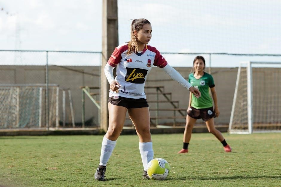 The Dribbling Grid‚ a common drill found in PDF resources‚ enhances ball mastery and close control. 1v1 Striker vs. Goalkeeper introduces basic attacking concepts.